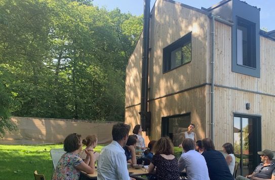 Alors que nous construisions une maison en bois destinée à la location en bordure de forêt de Marly, j’ai ressentis un « appel » de la forêt en grimpant la 1ère fois à l’étage : Et si ce lieu si proche des arbres devenait un lieu de vie hybride dans lequel on pourrait à la fois travailler en groupe autrement, se ressourcer, passer des vacances ? La Canopée de Mareil était née avec l’ambition de renouer ce lien biologique essentiel entre nous et nos voisins les arbres. Pourquoi ? Parce que les arbres nous inspirent, nous éveillent à nos 5 sens, nous relient à la Terre et au Ciel, au cycle de la vie, et nous font du bien.